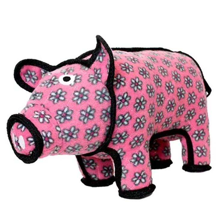 Tuffy Barnyard Pig. Great for interactive play with one or multiple dogs. Best for dogs who like to whip their toys and play tug for hours. Floats in water, and its machine washable, (air dry). 4 LAYERS OF MATERIAL Tuffy Ultimate toys are made with UP TO 4 layers. 1 layer soft fleece on the outside. 1 to 2 layers of industrial grade luggage material on the inside. 1 layer of plastic coating on the inside.